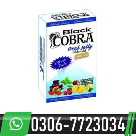 Black Cobra Oral Jelly in Pakistan is the Fastest and Most Powerful Substitute for “Generic Viagra”. Sildenafil Black Cobra 100mg Jelly Consists of the Equal Lively Ingredient as Viagra, Specifically Sildenafil Citrate, but in Two Times the Amount. But, the Benefit is in the Instantaneous Impact After Best Five Mins After Use and the Effect Time is 6 to 8 Hours.